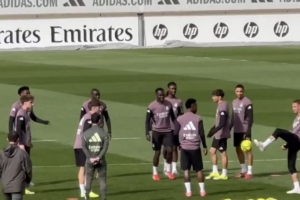 记者:卡马文加现身皇马备战塞尔塔赛前训练,此前因牙疼缺席比赛