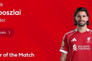 本场比赛索博斯洛伊打进精彩任意球,赛后当选英超官方球迷票选全场最佳球员。