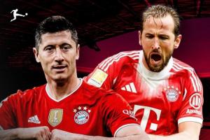 莱万多夫斯基在2020/21赛季效力拜仁时创下了德甲单赛季进球记录为41球,凯恩本赛季有机会追逐莱万的这项纪录。