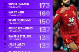 2017年来英超参与进球榜:萨拉赫281球断层领先,孙兴慜173球次席