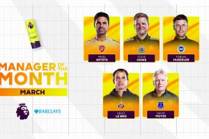本赛季英超月最佳主帅得主: