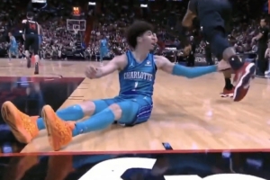 值得一提的是,去年10月28日黄蜂客场117-144不敌热火的比赛中,三球在倒地后也曾抓过阿德巴约小腿。