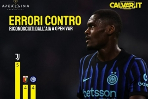 体育资讯4月15日讯 外媒盘点了本赛季意甲球队出现VAR不利判罚的次数榜,其中尤文5次最多,国米4次第二。具体如下: